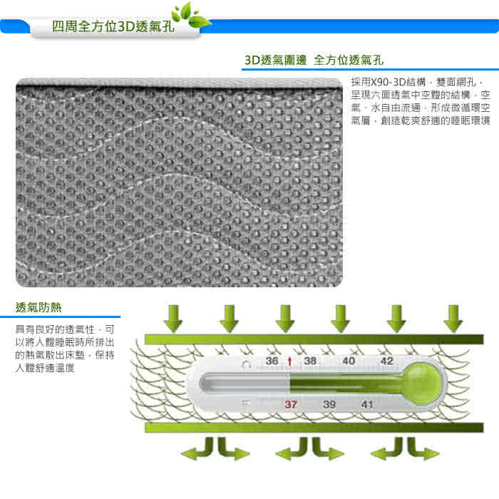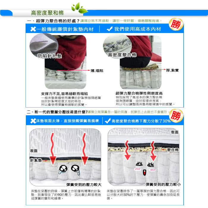 品號:2661371 超彈力聚合棉讓獨立筒不再過軟高級床墊專用的ACC透氣蜂巢新一代的彈簧雙層分壓技術100%台灣製造專人到府配送