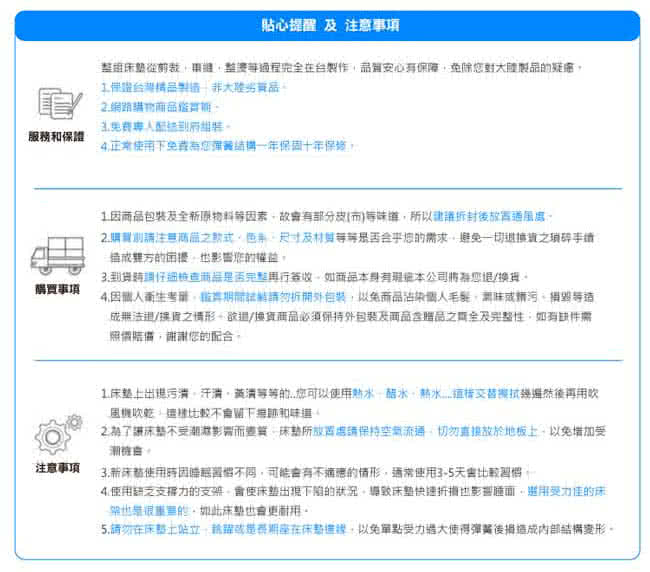 ◆回收服務:此商品不提供回收服務,可免費幫你1:1床墊搬下樓放置.請自行聯絡當地清潔隊。
